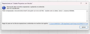Se indica la columa, debido a que el fichero .xlsx, es un comprimido de varios elementos.
