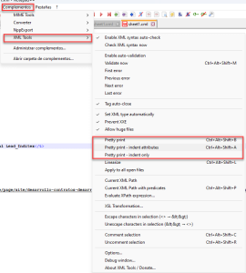 5. Con XML TOOLS, descomprimir el fichero, para que no este todo el contenido comprimido en un línea: